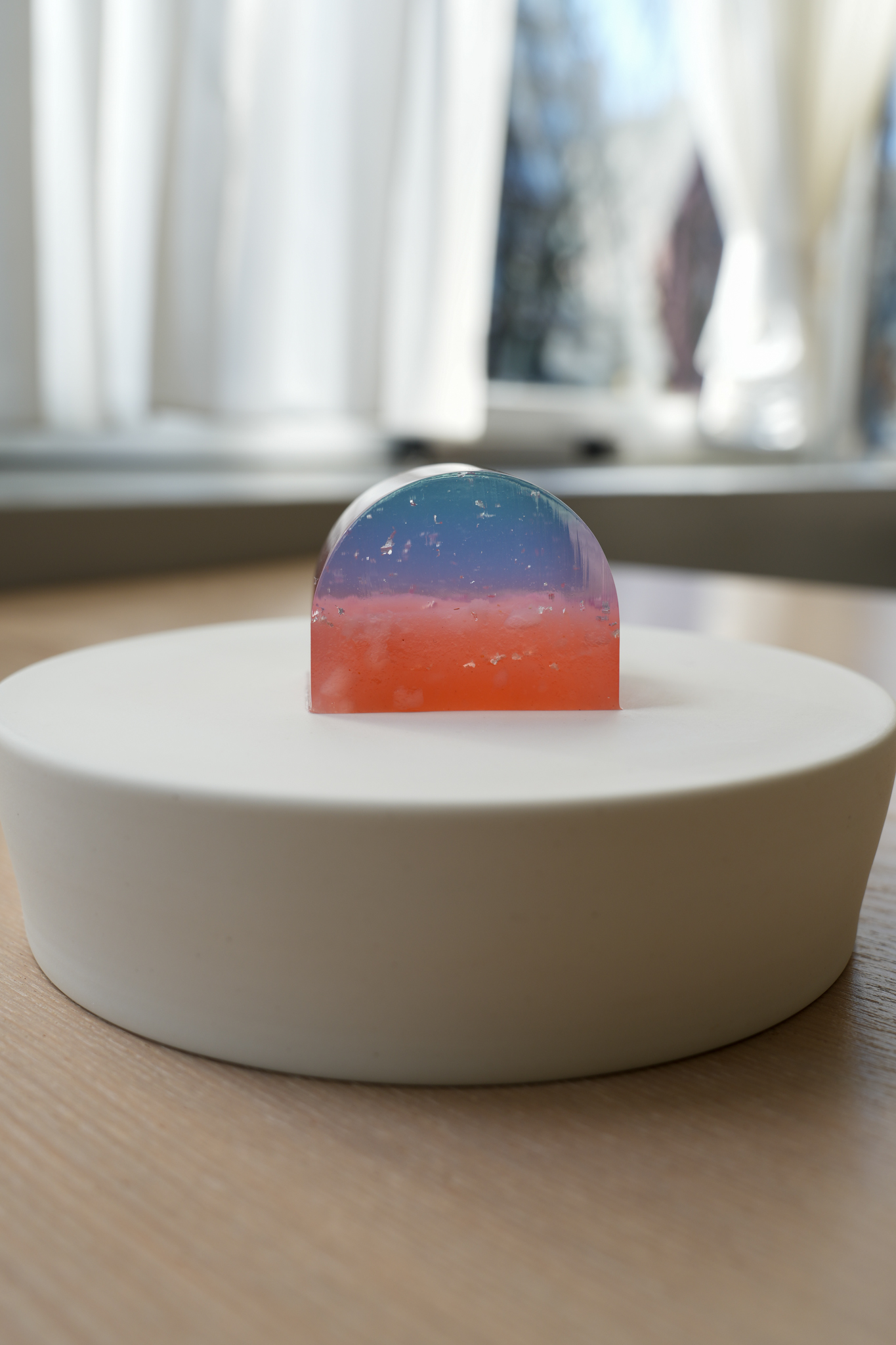 ぼんやりとしていた夢がふと鮮明になる瞬間をイメージしてみました。白い夢の世界から、グリーンの鮮明な世界へ。