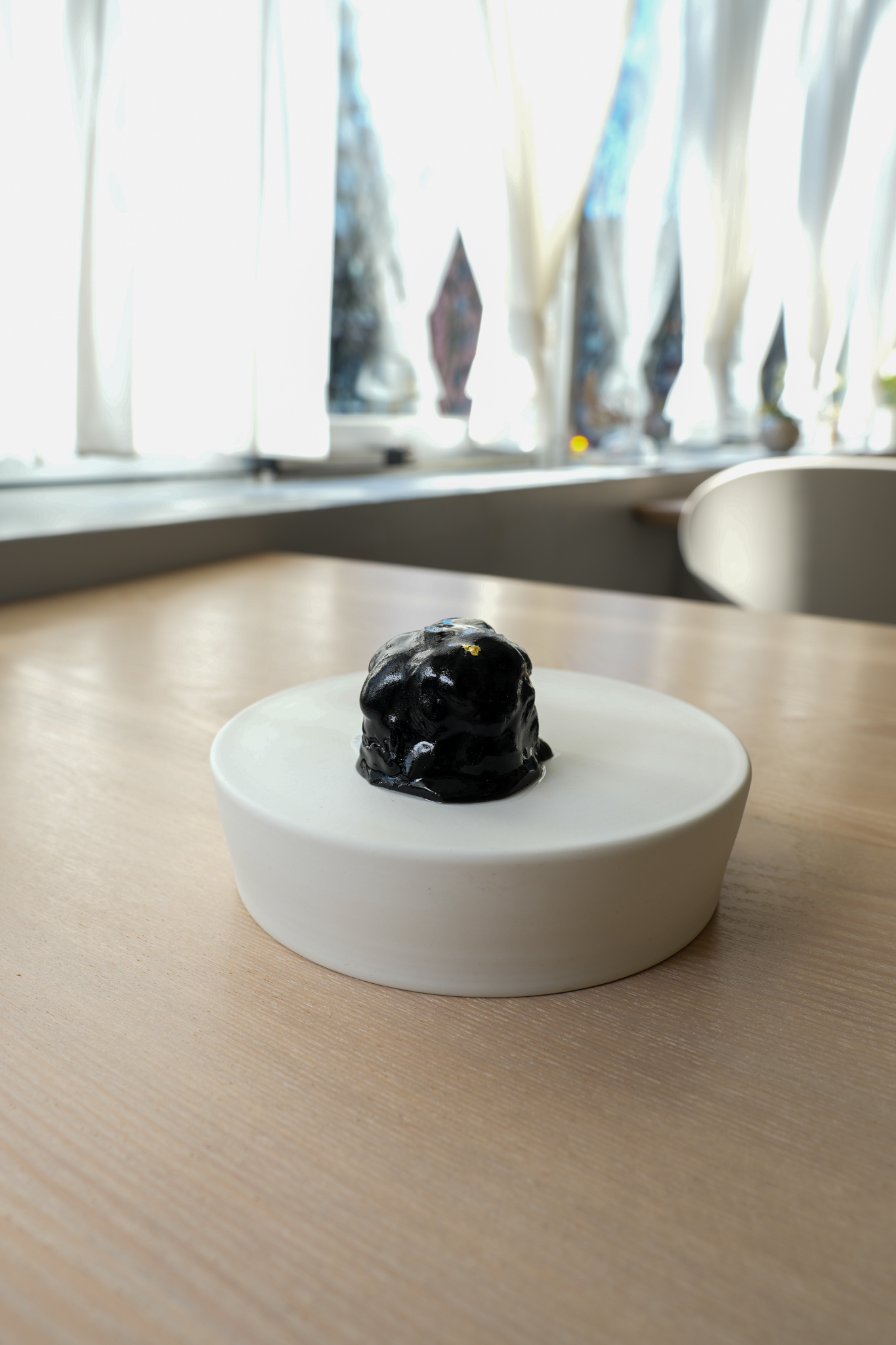 ビーツあん入りこしあんを黒豆で包み、お醬油と日本酒の錦玉羹で仕上げました。
